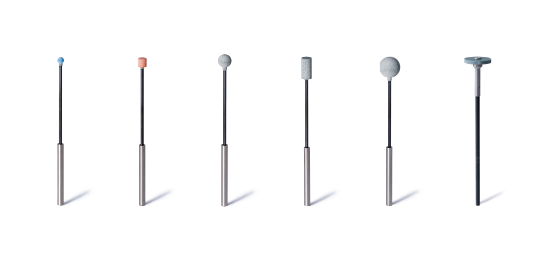 直径从3~10mm有五种尺寸。有三种类型的磨头(球形、圆柱形和圆盘形),以及三种不同的目数:#220、#400和#800。