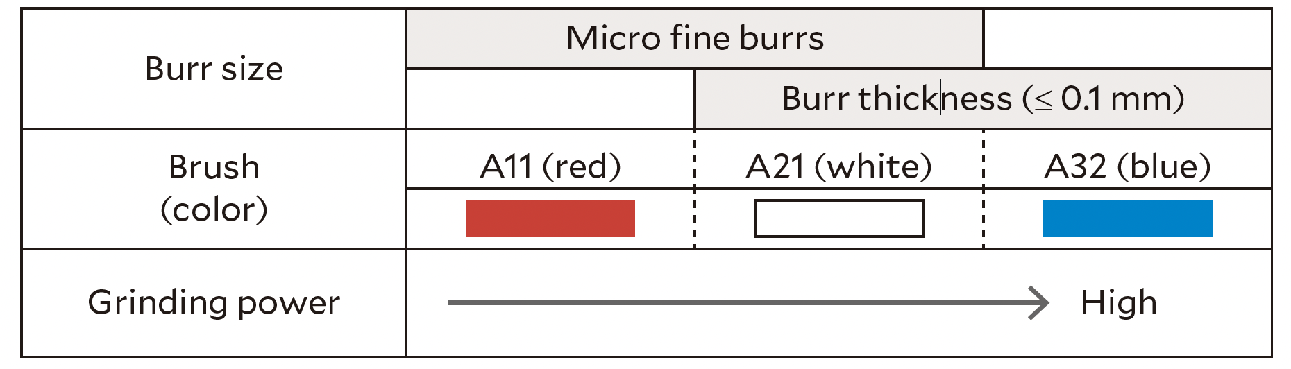 ■Use on large burrs will greatly increase brush wear and shorten tool life.