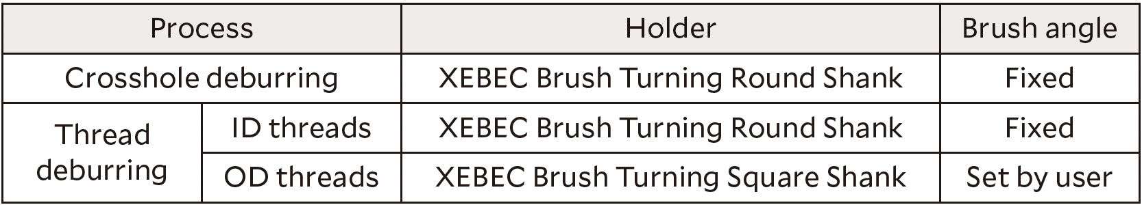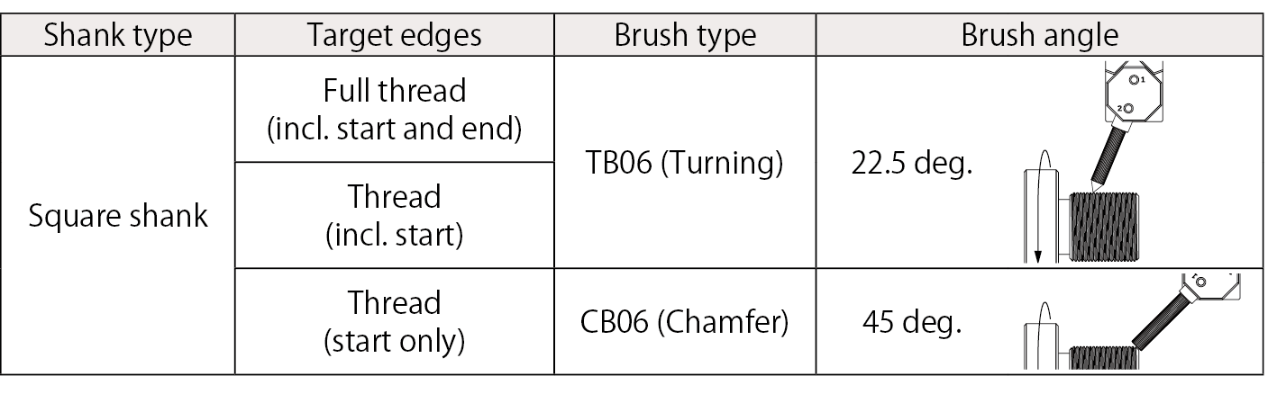 ■ Refer to “How to Use: External thread deburring mechanism” for brush angle recommendations.