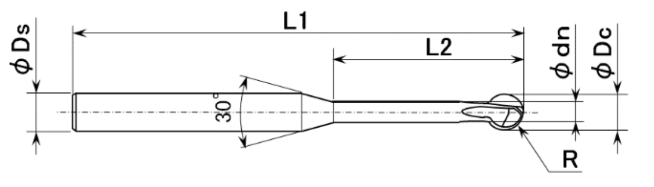 • 誤ったサイズのカッターで加工したり、ツールと被削材・ジグ・チャックの干渉を考慮しないと、製品・ジグ・機械が破損する恐れがありますので、使用前に必ず寸法を確認してください。
