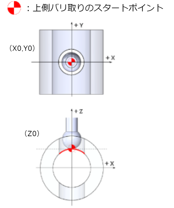 穴Φ10と内径Φ20が交差したエッジ部分(上下とも)のバリ取りをXEBEC裏バリカッター&バリ取りプログラムで行う。