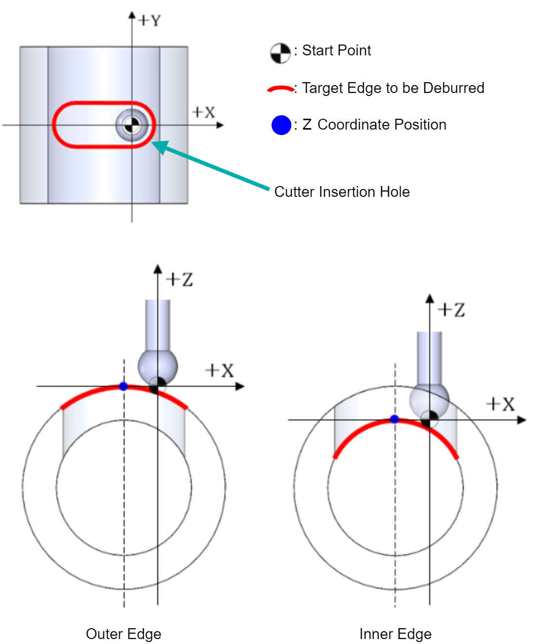 XEBEC Deburring Tool Path for absolute positioning (ABS) is generated with the Start Point position as the machine zero point (X0Y0Z0).