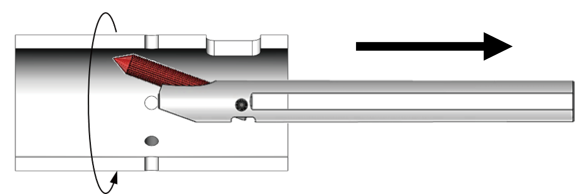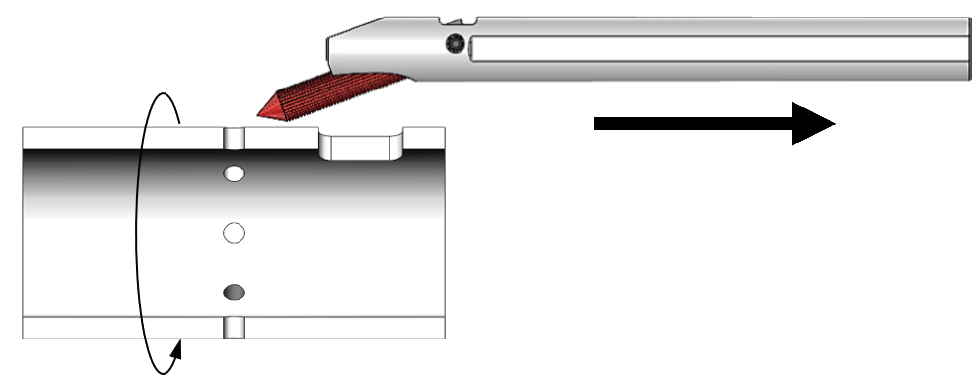 The Brush must be applied in the reverse feed direction, in the direction towards the end face of the Holder, regardless of whether it is applied for external turning or internal turning as shown in the figure below.